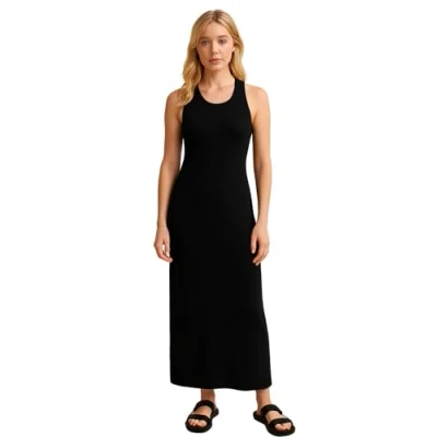 Women's Racer Back Maxi Dress Ladies Full Length Jersey Long Vest Muscle Sleeveless Plus Size Black