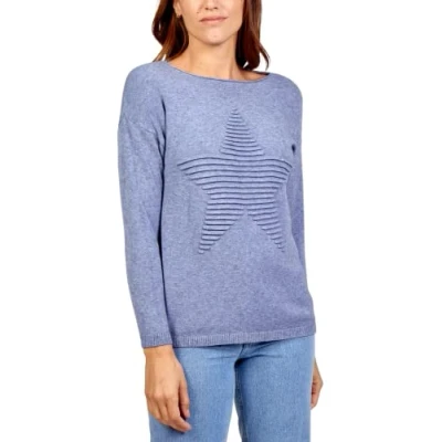 Women's Ribbed Star Jumper Casual Italian Lagenlook Stretchy Pullover Sweatshirt Ladies Crew Neck Long Sleeve Winter Soft Knit Cardigan Tops Denim