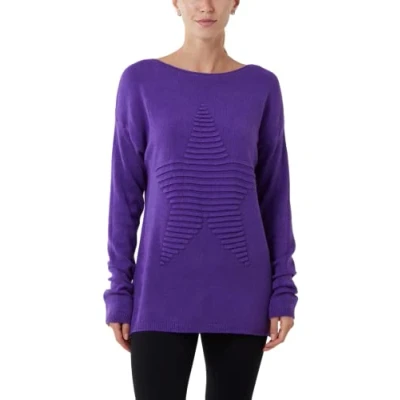 Women's Ribbed Star Jumper Casual Italian Lagenlook Stretchy Pullover Sweatshirt Ladies Crew Neck Long Sleeve Winter Soft Knit Cardigan Tops Purple
