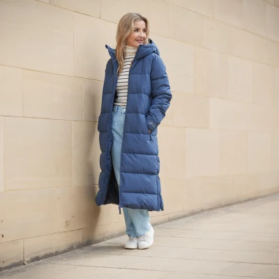 Perfect for walks in the park or commuting to work, the Women's Roaming Jacket is a stylish option which features baffles filled with synthetic insulation for keeping cosy and warm during the winter months. The outer is highly water resistant with a PFC-free durable water repellent (DWR) finish, ideal for keeping dry when faced with rainfall. Featuring zip vents at the hem which allow for ease of movement and comfort when sitting, a big cosy hood with a deep collar for protection against the elements and two zipped hand pockets for safely stashing your essentials away, this jacket is the perfect addition to any winter wardrobe! Iconically styled by North Ridge ambassador Helen Skelton. · Stylish, flattering fit long line padded jacket · Main Fabric: 75D highly water resistant stretch outer fabric with PFC-free durable water repellent (DWR) finish · Fill: 689g (Size 12) Loose fill / Synthetic insulation · Stitch through baffle construction · Generously sized cosy hood with deep collar · Reverse coil 2-way centre front zip, with internal zip guard · Elasticated cuffs · Two zipped hand pockets - for safely stashing essentials away · Stitch through baffle construction · Zip vents at hem for ease of movement when sitting · Main Material: 88% Polyester / 12% Elastane · Lining Material: 100% Polyester · Colour: Navy
