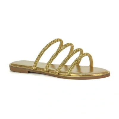 Women's Slip On Diamante Strappy Flat Sandal Ladies Gold Rhinestone Holiday Mule Slider Shoes Size 6