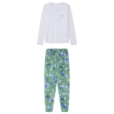 Women'secret Women's Long Pyjama Daily Farmer's Market PJs, Grey, L