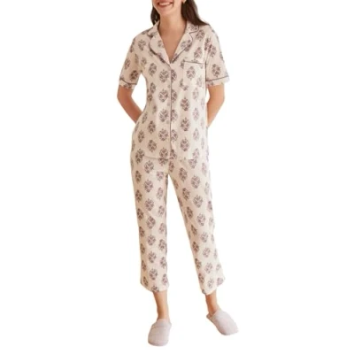 Women'secret Women's Daily Marrakech Short Sleeve Pyjamas Pajama Set, Ecru Print, M