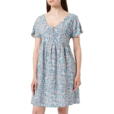 Women'sShort dress with short sleeves Central buttons and strap at the back Floral print in green