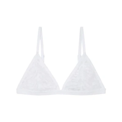 NATURAL triangle bra crafted in delicate leaf lace. Get the matching panty! Nonwired, no padding.