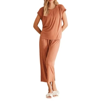 Women'secret Women's Spring Soft Touch Capri Pyjamas Pajama Set, Toffee, S