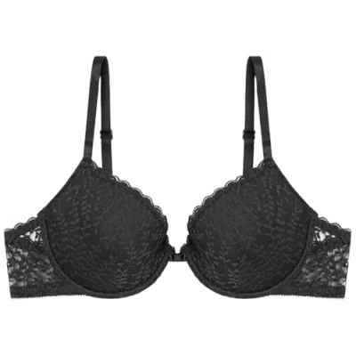 BEAUTIFUL classic bra with leaf lace. Plus, it's underwired and padded to enhance the natural beauty of your chest. Ideal, right? Pair it with the matching tanga, classic panty or wide side Brazilian panty! Multiway straps. Design adapted to size for the best fit and comfort: Thin adjustable straps in size 90C. Wide straps with formfitting back from size 95C90D. Wide straps with formfitting back from size 95C90D.