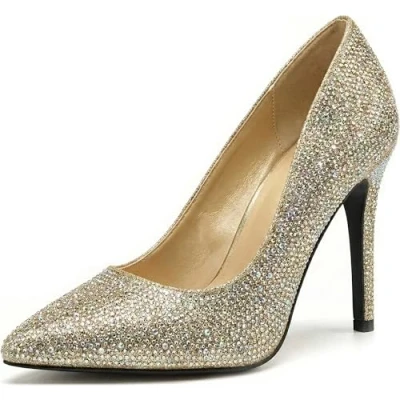 Women Stiletto High Heel Pointed Pumps Ladies Party Clubbing Work Court Shoes Size 3 12 (10 UK, Gold Glitter)