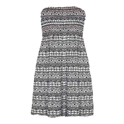 Women Strapless Sheering Top Printed Bandeau Boob Tube Sleeveless Vest Ruched Gather Sharing Mini Dress Small Aztec UK 20 22