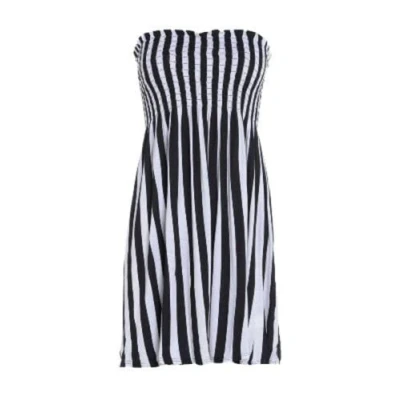 Women Strapless Sheering Top Printed Bandeau Boob Tube Sleeveless Vest Ruched Gather Sharing Mini Dress Stripe Print UK 16 18