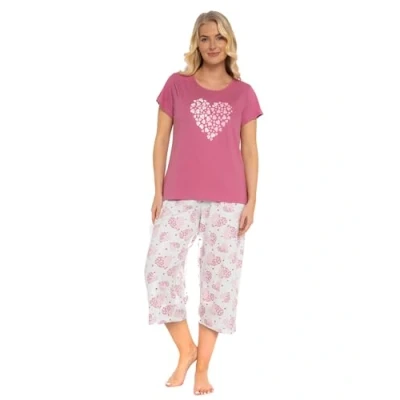 Womens 100% Cotton Jersey Short Sleeved Cropped Leg Animal, Butterfly, Bear & HEART Design Pyjamas (RASPBERRY 8 10)