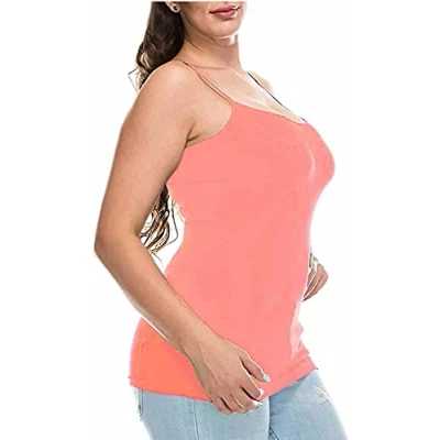 Womens Basic Layering Long Tanks Vest Tops Spaghetti Strap Stretchy Cami Bodycon Jersey Camisole Tank Top Coral 20 22