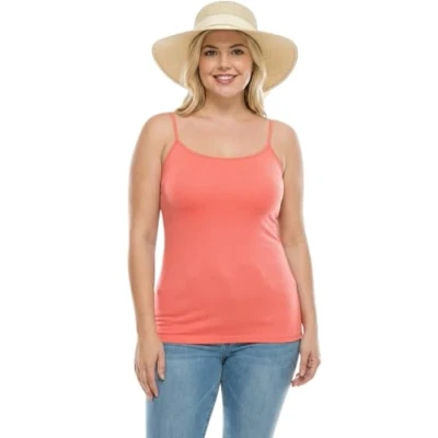 Womens Basic Layering Long Tanks Vest Tops Spaghetti Strap Stretchy Cami Bodycon Jersey Camisole Tank Top Coral 24 26