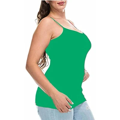 Womens Basic Layering Long Tanks Vest Tops Spaghetti Strap Stretchy Cami Bodycon Jersey Camisole Tank Top JadeGreen 16 18