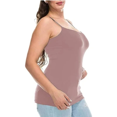 Womens Basic Layering Long Tanks Vest Tops Spaghetti Strap Stretchy Cami Bodycon Jersey Camisole Tank Top Mocha 20 22