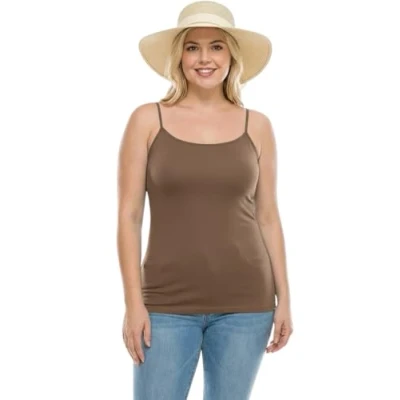 Womens Basic Layering Long Tanks Vest Tops Spaghetti Strap Stretchy Cami Bodycon Jersey Camisole Tank Top Mocha 24 26