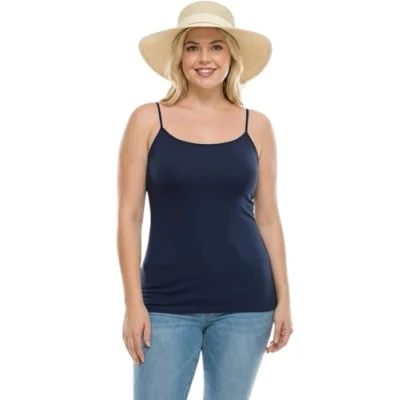 Womens Basic Layering Long Tanks Vest Tops Spaghetti Strap Stretchy Cami Bodycon Jersey Camisole Tank Top Navy 24 26