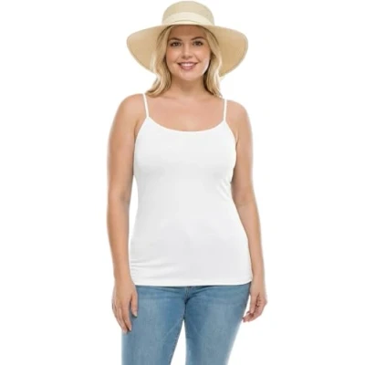 Womens Basic Layering Long Tanks Vest Tops Spaghetti Strap Stretchy Cami Bodycon Jersey Camisole Tank Top White 16 18