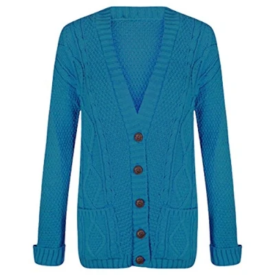 Womens Chunky Cable Knitted Ladies Boyfriend Grandad Pocket Button Top Cardigan, (S/M 8 10, Teal)