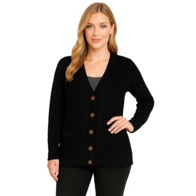 Womens Chunky Cable Knitted Ladies Boyfriend Grandad Pocket Button Top Cardigan, (XXL 20 22 Plus Size, Black)