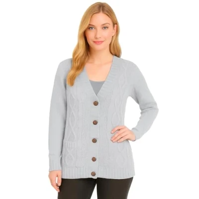 Womens Chunky Cable Knitted Ladies Boyfriend Grandad Pocket Button Top Cardigan, (XXL 20 22 Plus Size, Silver Grey)