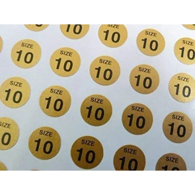 Womens Clothes Size Stickers, 10, Black on Gold 16mm Circle Self Adhesive Clothing Labels
