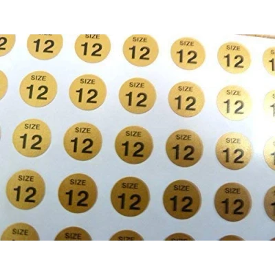 Womens Clothes Size Stickers, 12, Black on Gold 16mm Circle Self Adhesive Clothing Labels