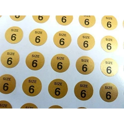 Womens Clothes Size Stickers, 6, Black on Gold 16mm Circle Self Adhesive Clothing Labels