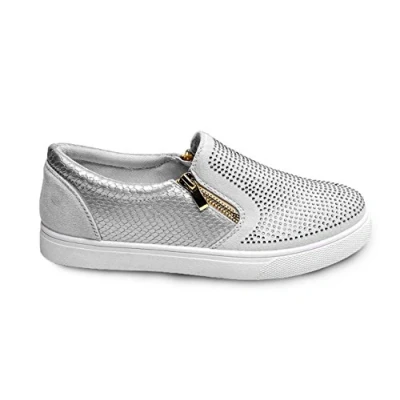 Contrast skin sides Shiny diamante pieces on the front for a beautiful glitter effect Side zips for fastening and extra bling Heel Type: Flats Closure: Stretch