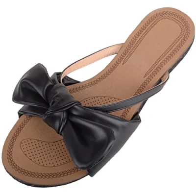 Womens Easy Slip On Bow Design Peep Toe Summer Holiday Slider Sandals Black UK 6 / EU 39