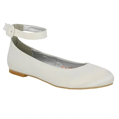 Womens Flat Ankle Strap Ballet Pumps Ladies Ballerina Party Bridal Smart Shoes 3 8 White Satin