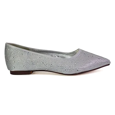 Womens Flat Diamante Shoes Ladies Wedding Slip On Point Toe Ballet Pumps