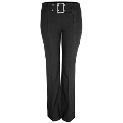 Womens Flat Front Bootleg Trouser Sewn Crease Stretch Fit Trousers Buckel Style Uniform Maid Housekeeper Beautician Businesswear Workwear Inside Leg 29 Inches (14, Black)