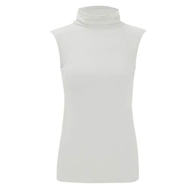 Womens Girls Plain Polo Neck Vest Ladies Stretch Turtle High Sleeveless T Shirt Top Plus Size 8 26 (L/XL UK 16 18, White)