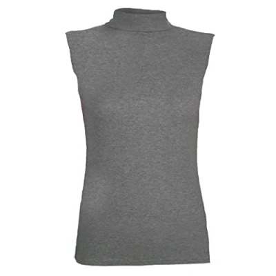 Womens Girls Plain Polo Neck Vest Ladies Stretch Turtle High Sleeveless T Shirt Top Plus Size 8 26 (M/L UK 12 14, Charcoal)