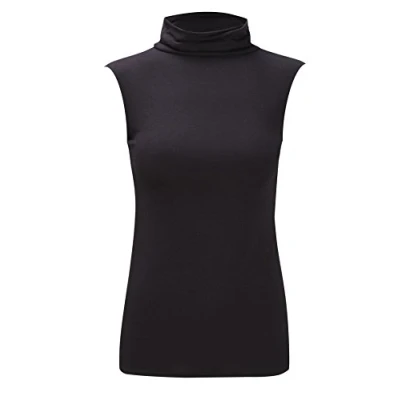 Womens Girls Plain Polo Neck Vest Ladies Stretch Turtle High Sleeveless T Shirt Top Plus Size 8 26 (XXL/XXXL 24 26, Black)