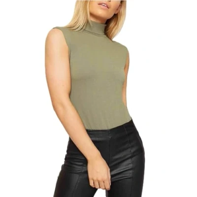 Womens High Roll Polo Turtle Neck Top Sleeveless Ladies Basics Stretch Summer Shirt Vest Khaki, 20 22