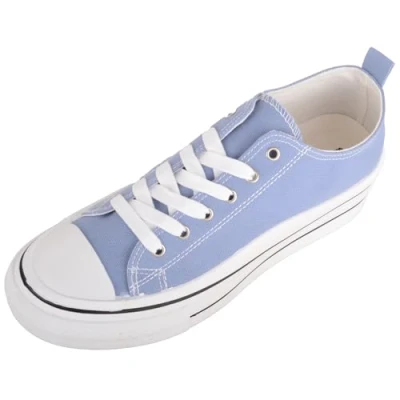 Womens Lace Up Casual Leisure Canvas Trainers Sneakers Pumps with Chunky Platform Sole Sky Blue UK 6