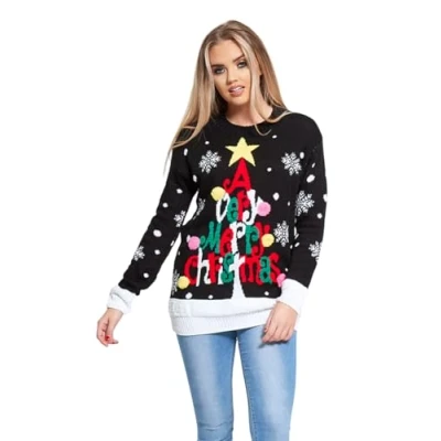 Womens Ladies Knitted Ribbed Elf Body Longline Christmas Sweater Jumper Size S 2XL