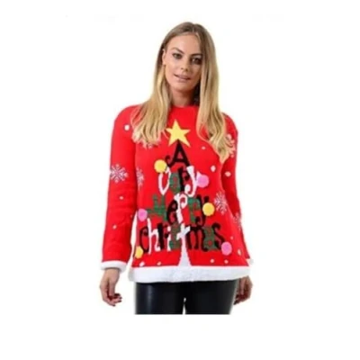 Women Ladies Knitted Elf Xmas Jumper Xmas Christmas Knitted Jumper Pullover Elf Body Knitted Print on Front Crew Neck, Long Sleeve Ribbed Neckline and Cuffs