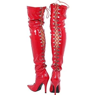 Womens Ladies Sexy Thigh HIGH Kinky Fetish Over The Knee Stiletto Heel Full Hook Lace up and Side Zip Boots Size UK 4 12 (UK 11/EU 45, Red Patent)