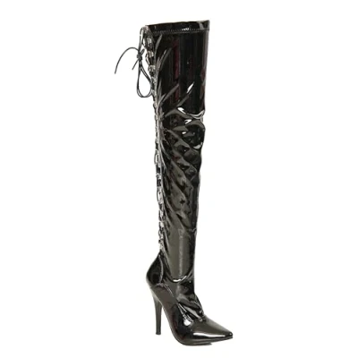 Womens Ladies Sexy Thigh HIGH Kinky Fetish Over The Knee Stiletto Heel Full Hook Lace up and Side Zip Boots Size UK 4 12 (UK 8/EU 41, Black Patent)