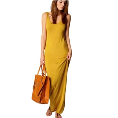 Womens Ladies Sleeveless Long Vest Jersey Racer Back Stretch Bodycon Maxi Dress (M/L (12 14), Mustard)