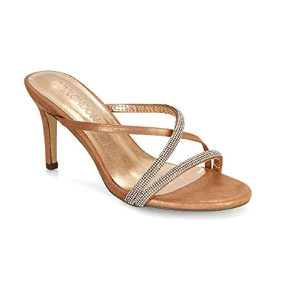 Womens Mid Heel Stiletto Diamante Strappy Sandals Ladies Party Rhinestones Mule Slip On Shoes Size 3 8 Rose Gold