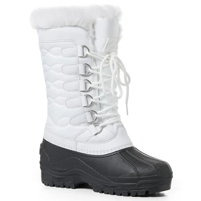 Womens Nylon Waterproof Weather Outdoor Snow Duck Winter Rain Cuff Lace Boot 7 WHI40 YC0133 White