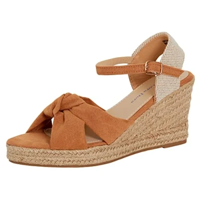 Womens Open Toe Wedge Sandals Espadrille Wedges Strappy Hessian Ankle Wrap Shoes Tan UK 8