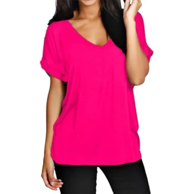 Womens Oversize Fit V Neck Top Ladies Baggy Plus Size Batwing Casual T Shirt sizes 8 24 (XXL UK 20 22, Cerise Pink)