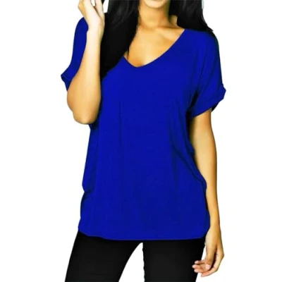 Womens Oversize Fit V Neck Top Ladies Baggy Plus Size Batwing Casual T Shirt sizes 8 24 (XXL UK 20 22, Royal Blue)