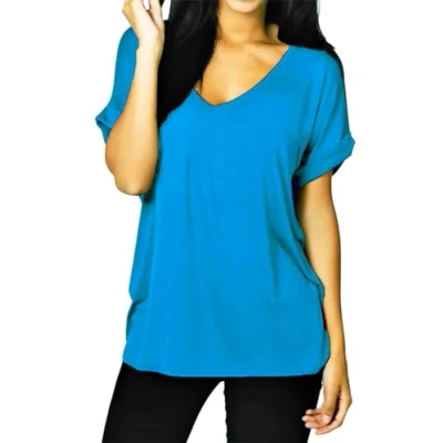 Womens Oversize Fit V Neck Top Ladies Baggy Plus Size Batwing Casual T Shirt sizes 8 24 (XXL UK 20 22, Turquoise)