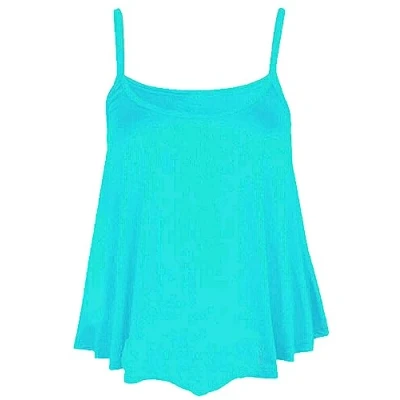 Womens Plain Cami Swing Vest Sleeveless Top Ladies Strappy Flared Plus Size Aqua UK 12 14